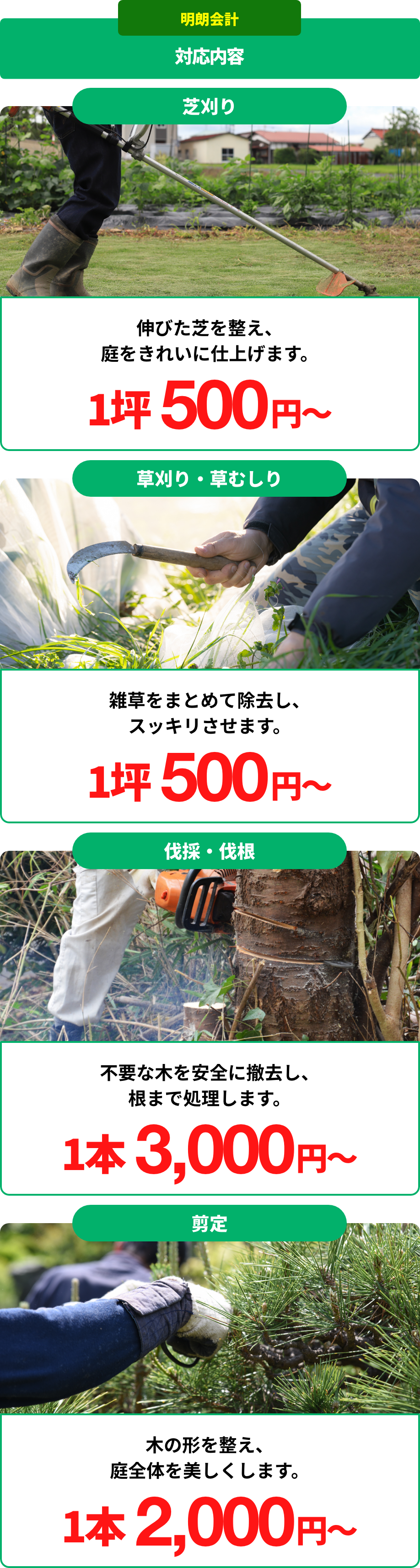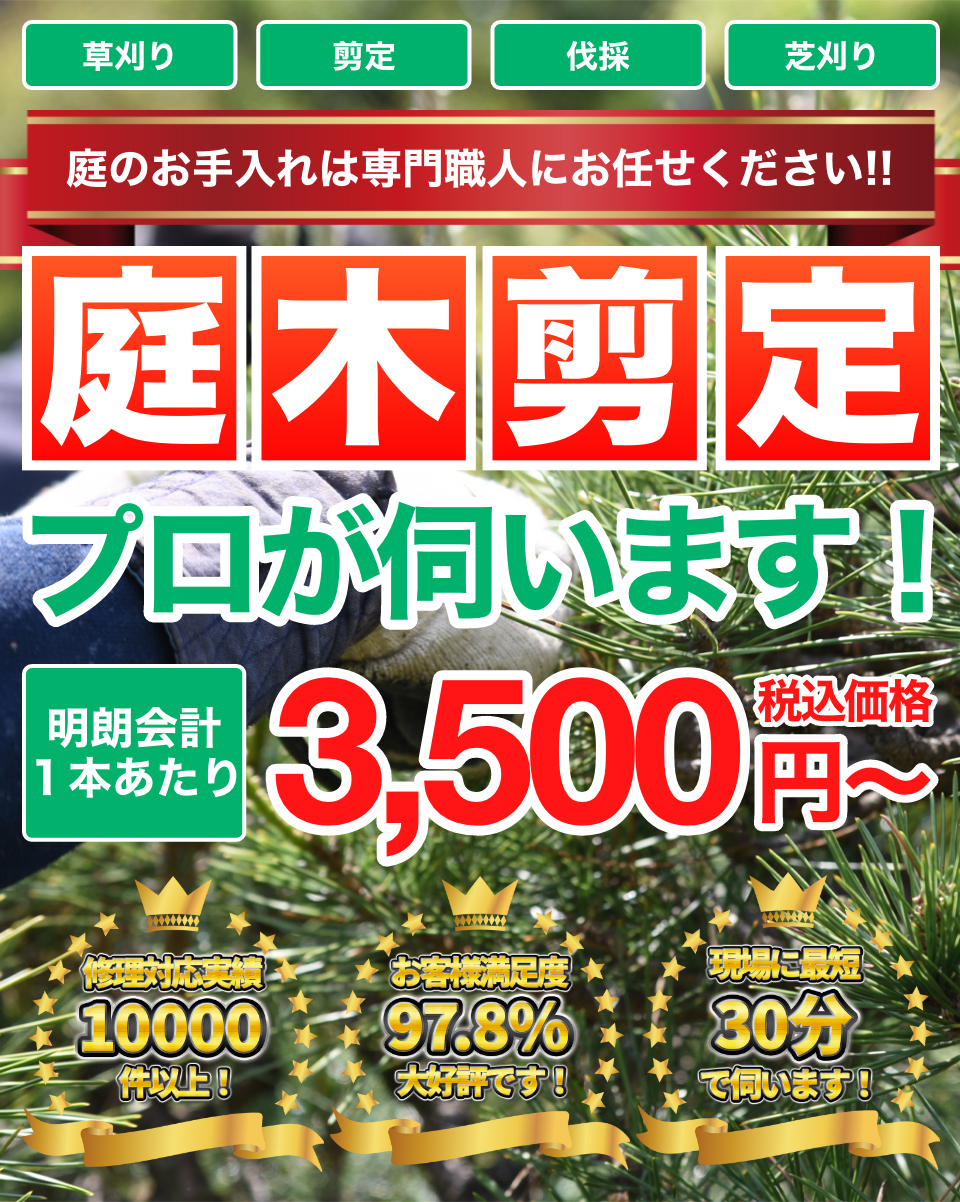 1坪500円〜庭木1本でもお任せください!